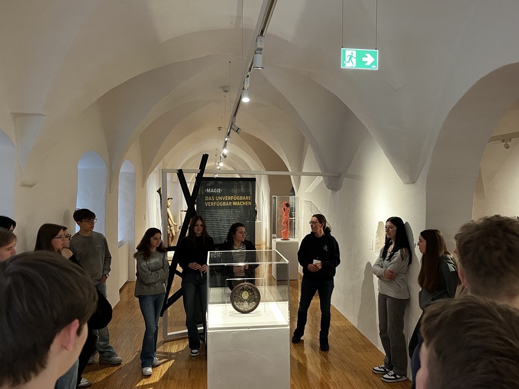 Im Rahmen eines spannenden Vermittlungsprogramms wurde den Schülerinnen und Schüler ermöglicht, sich anhand von 7 Stationen mit religiösen Praktiken auseinanderzusetzen. Es waren sowohl historische Objekte als auch zeitgenössische Kunstwerke, die die Themen „Bewegung, Zufall, Magie, Ordnung, Körper, Fruchtbarkeit und Sammeln“ beleuchteten. Als Highlights der Ausstellung nannten die Jugendlichen u.a. die Vielzahl an Reliquien, Freisenhauben, Breverl, Amulette, Kunst von Hermann Nitsch oder die 15 geheimen Leiden Christi.