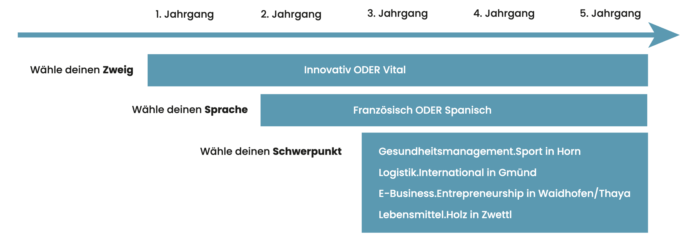 Je nach individuellem Interesse wählen die Schülerinnen und Schüler ab dem ersten Jahrgang zwischen den beiden Ausbildungszweigen „Vital“ und „Innovativ“, die in den ersten beiden Jahrgängen je zwei Wochenstunden, in den 3. – 5. Jahrgängen je eine Wochenstunde unterrichtet werden.