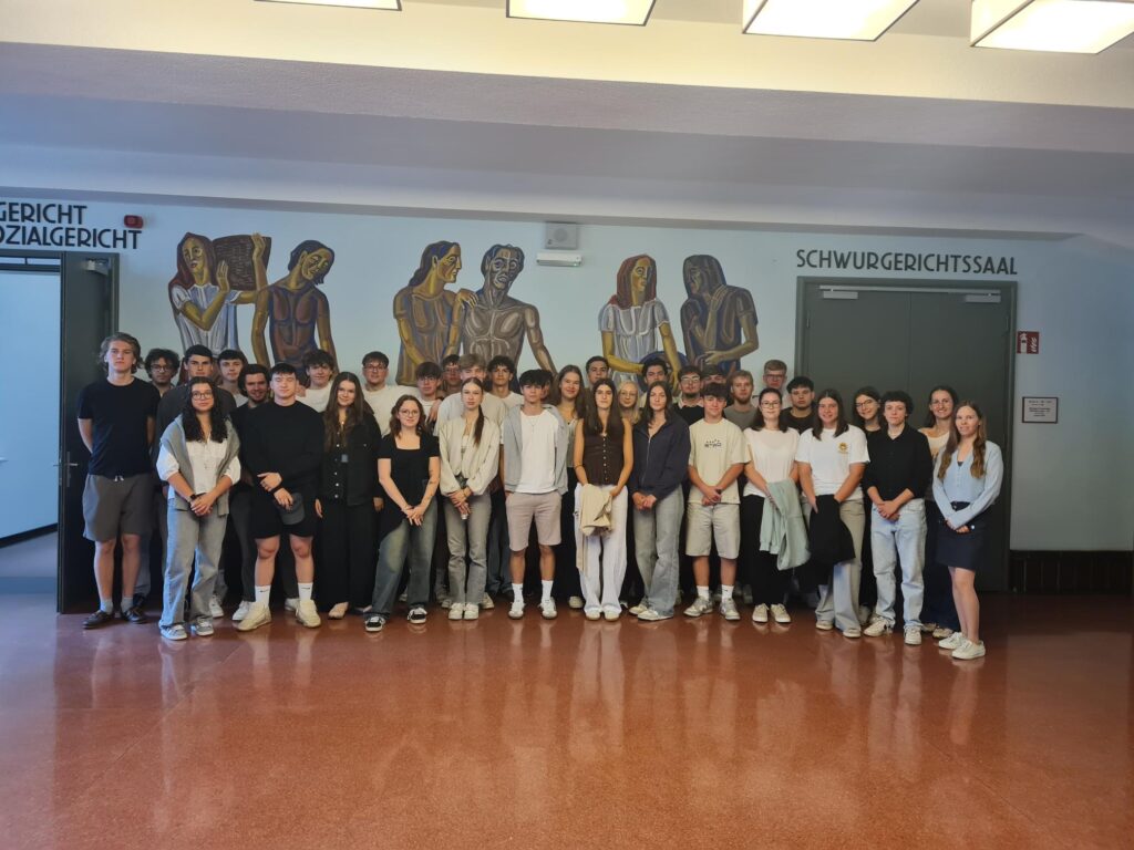 Angeklagt waren die Vergehen der gefährlichen Drohung sowie der Nötigung. Die Schülerinnen und Schüler konnten das erlernte Wissen in Strafrecht nun in seiner praktischen Anwendung erleben. Eine Einzelrichterin verhandelte die beiden Vergehen. Darüber hinaus waren eine Staatsanwältin, ein Verteidiger sowie eine Privatbeteiligtenvertreterin (Opfervertreter) und ein Bewährungshelfer– neben dem Angeklagten selbst – Teilnehmer des Prozesses.