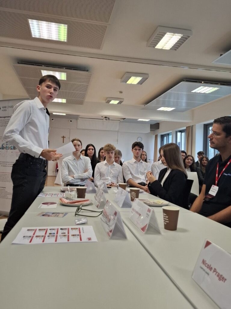 Ein besonderes Highlight: Auch Schüler:innen der BHAK Horn durften pitchen. Sie stellten ihre Übungsfirmen, die Schwerpunkte sowie die Ziele der Schule vor und zeigten, wie praxisnah Wirtschaftsausbildung heute sein kann.