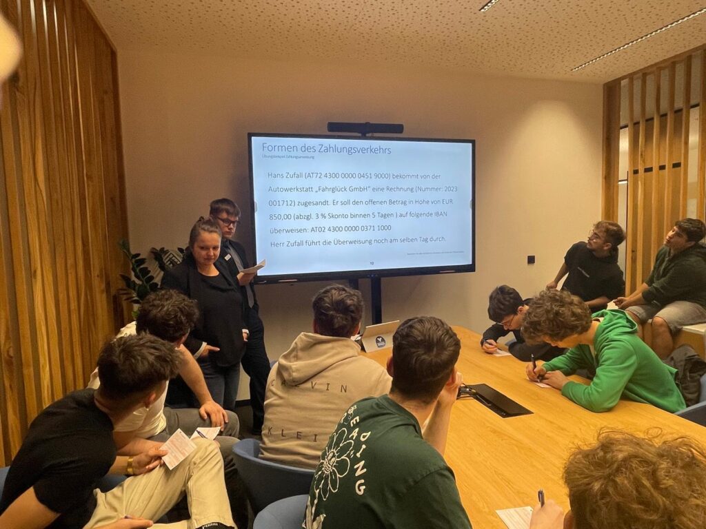 Die ersten Jahrgänge erlebten im Rahmen der Business Week einen Workshop bei der Volksbank zu den Themen Konto, Zahlungsverkehr, Cyber Security und Künstliche Intelligenz hautnah.