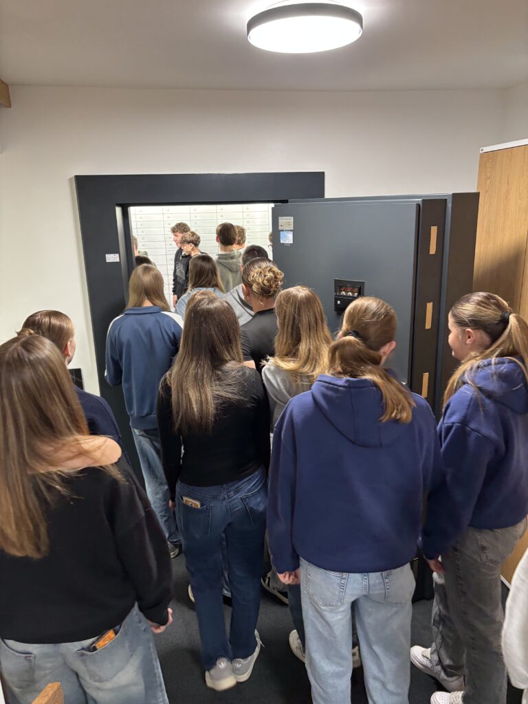 Wir durften auch den Kassabereich und den Saferaum besichtigen. Abgerundet wurde dieser tolle Lehrausgang mit einer köstlichen Jause. Herzlichen Dank an das Team der Volksbank Horn.