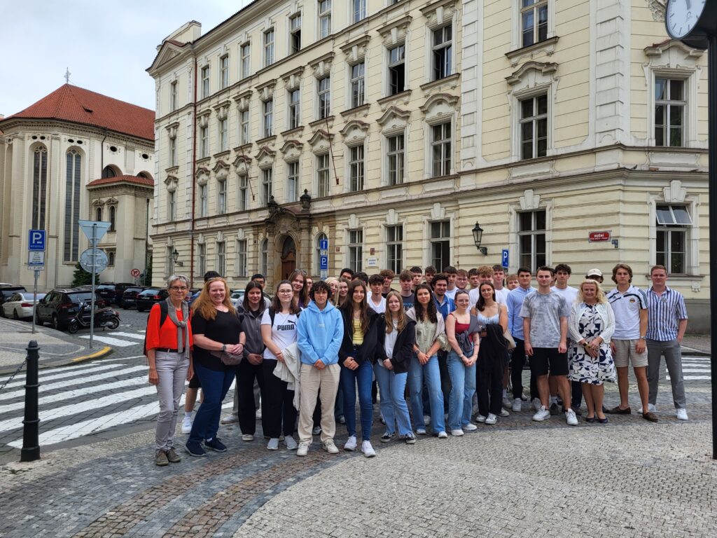 Am zweiten Tag erwartete die Teilnehmer:innen ein spannendes wirtschaftliches Programm: Der stellvertretende Leiter der Außenwirtschaftsstelle in Prag bot einen informativen Einblick in den tschechischen Markt und beleuchtete wirtschaftliche Verflechtungen zwischen Österreich und Tschechien. Gastgeber an diesem Vormittag war Herr Mag. Stöger, Geschäftsführer und Partner des Unternehmens AUDITOR. In seinem Vortrag schilderte er die Entwicklung seines Unternehmens sowie den Aufbau eines erfolgreichen Firmennetzwerks in Österreich, Tschechien und der Slowakei. Darüber hinaus stellte er das Berufsbild des Steuerberaters und Wirtschaftstreuhänders vor und gab den Schüler:innen praxisnahe Tipps für ihre berufliche Zukunft.