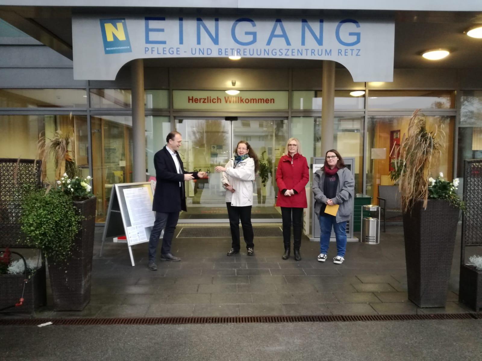 Mit Freude konnte der USB-Stick den Leitern des Stephansheimes Horn und der Pflegeheime Eggenburg, Retz und Hollabrunn vor Ort von den Vertretern der Schulen übergeben werden.